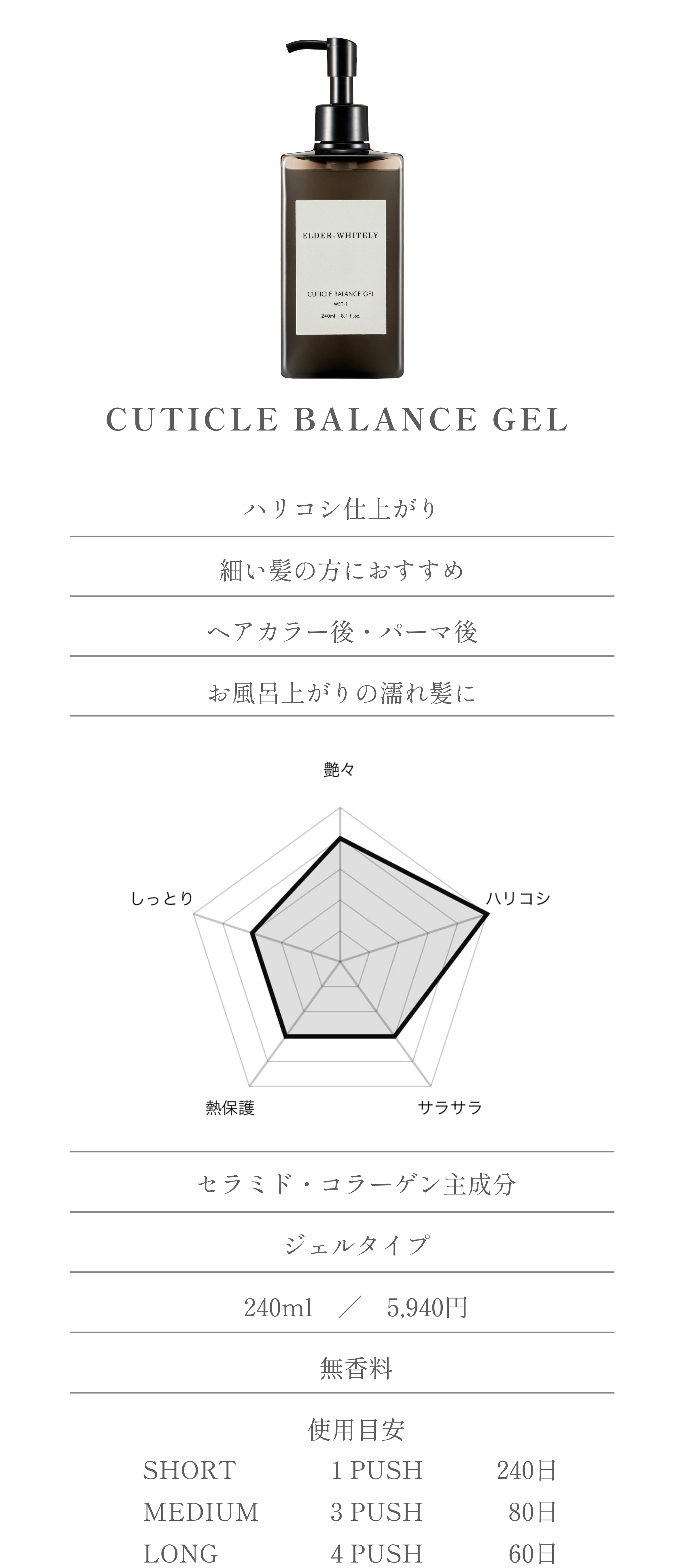セラミドを前提とした各アウトバス配合の成分が髪のキューティクルに必要な膜を形成し、髪表面のバリア機能を強化。それにより、持続的な補修効果を発揮し、アウトバスの効果だけでなく、サロントリートメントの仕上がりも長期間維持します。